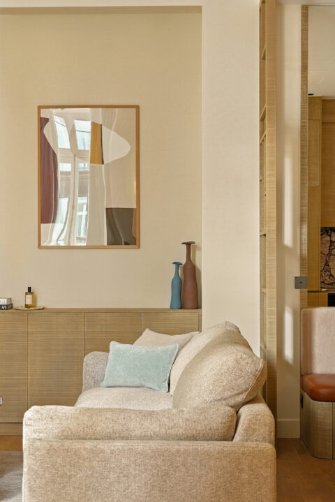 Les appartements se révèlent enfin : lignes apaisées, palettes douces, mobilier contemporain et affirmé.