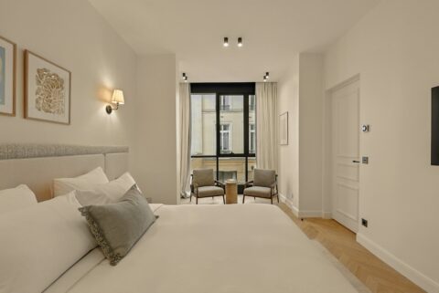 2. Des chambres ouvertes sur les façades parisiennes, conçues comme des refuges lumineux,